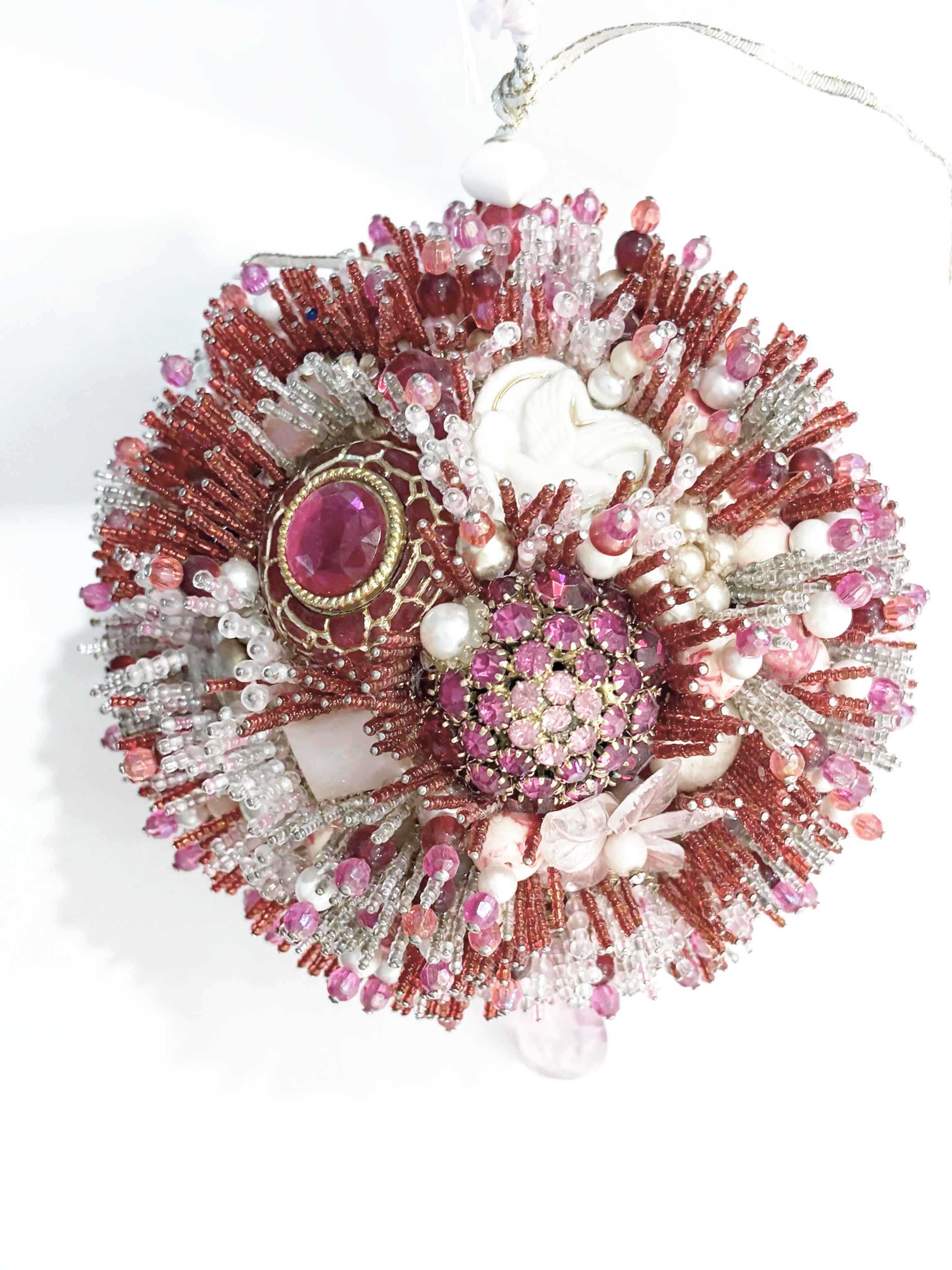 Our one-of-a-kind beaded heart sculptures are true collector works—meticulously composed with thousands of beads and vintage elements. Dimensional. Architectural. Radiant from every angle.